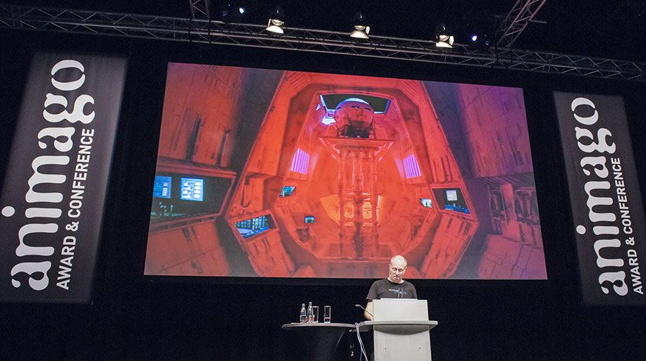Nikolaus Netzer hält einen Vortrag zum Thema Stanley Kubricks „2001 A Space Odyssey“ auf dem Animago Award & Conference in Potsdam-Babelsberg